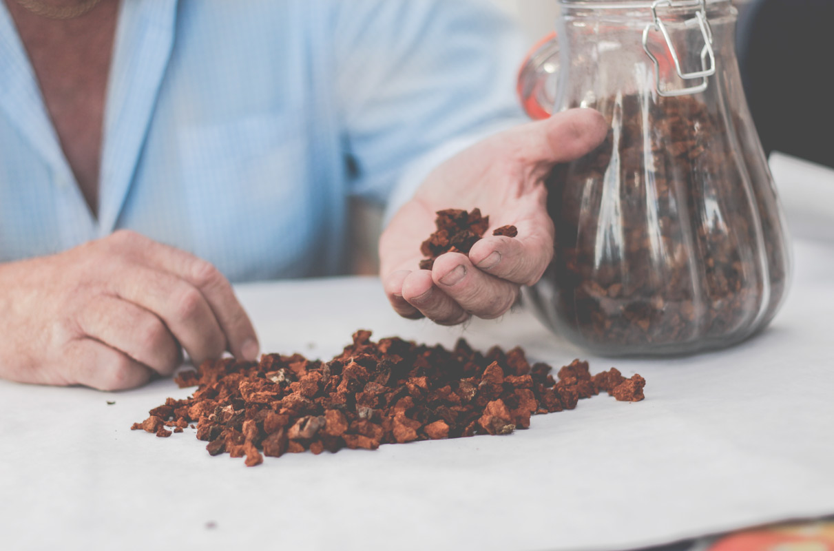 Bengt went and got his stash of Chaga, which he kept in a jar after drying it.